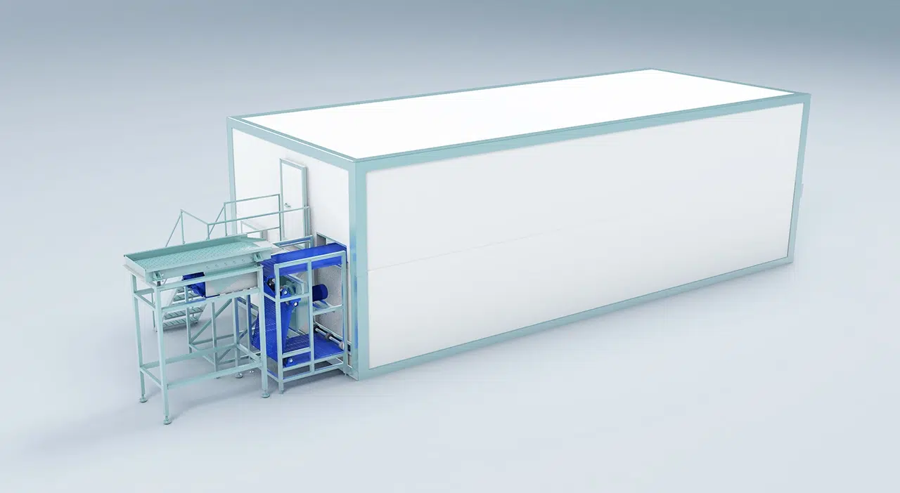 The Fluidized Quick Freezer is a high-efficiency freezing system specifically designed for IQF (Individually Quick Frozen) processing of small, granular food products such as peas, berries, shrimp, and French fries.